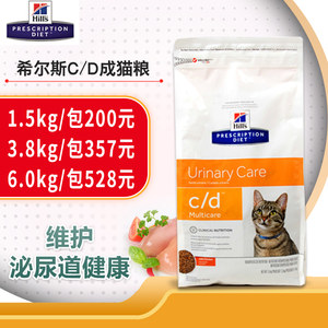 Hills希尔思cd猫粮泌尿道处方粮希尔斯c D尿结石尿血尿频黄家皇家泌尿道处方猫粮利尿通宠特宝搭配希尔思