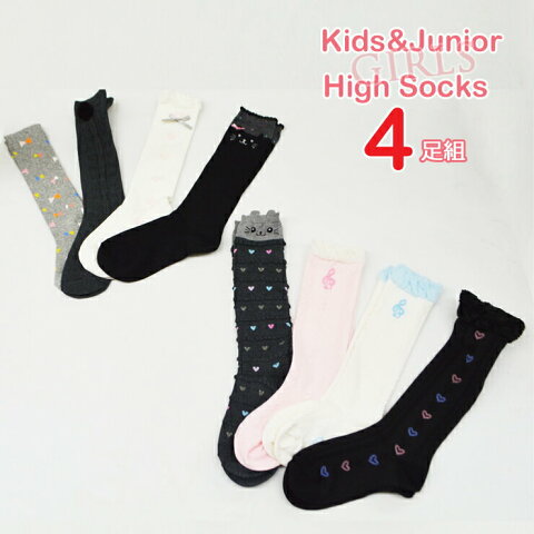 子供 キッズ 靴下 ソックス 女の子 ガールズ ロゴ 猫柄 女児ハイソックス4足セット15 靴下 キッズソックス パーティハウス公式online Store